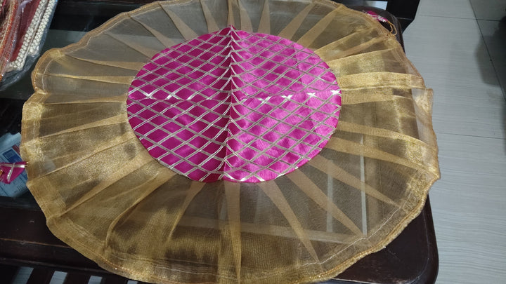 Multi-Purpose Thal Cover & Potli – Golden Net with Gota Work (2 ft x 2 ft)