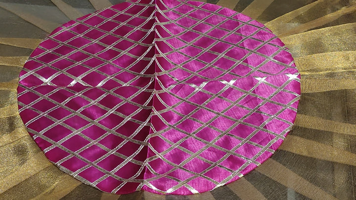 ✨ Elegant and versatile, this Thal Cover that transforms into a Potli is a must-have for festive and wedding rituals. Made from shimmering golden net fabric with intricate gota work in the center, it adds a traditional touch to your celebrations. Measuring 2 ft x 2 ft (approx.), it can...