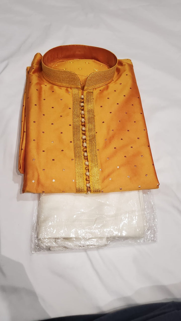 Mustard Yellow Kurta With White Pajama Set Golden dots on kurta