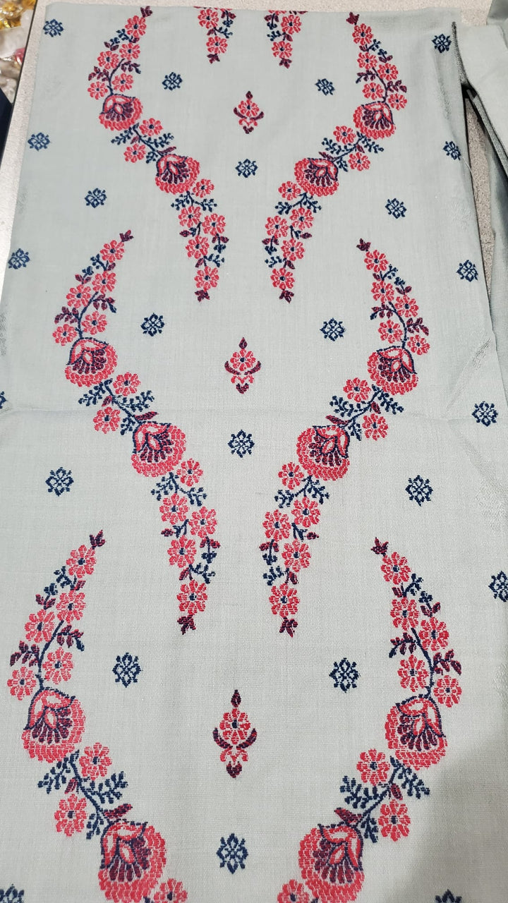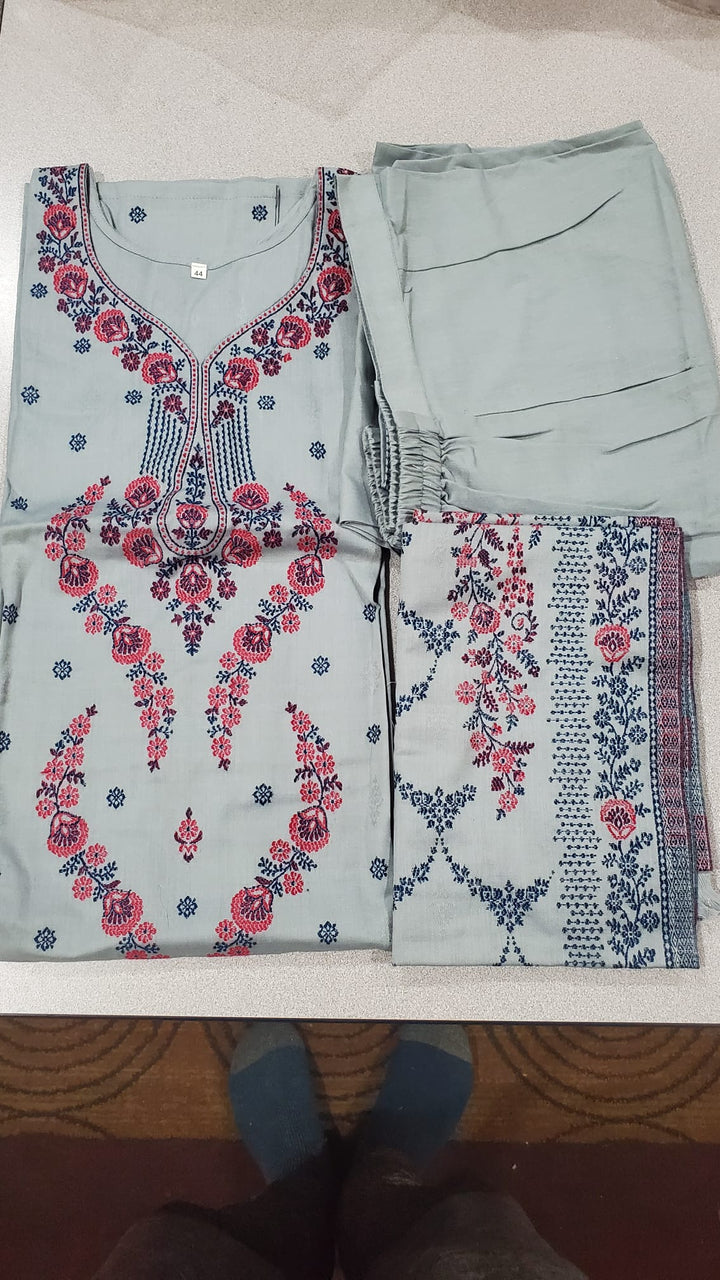 ✨ Fabric Highlight:Soft wool blend in a soothing grey shade, beautifully detailed with printed floral motifs in shades of pink and navy blue. Comes with a matching stitched pant and a coordinated printed woolen shawl. 🌸 Product Summary:A graceful printed woolen suit that combines elegance with comfort. The delicate rose-inspired...