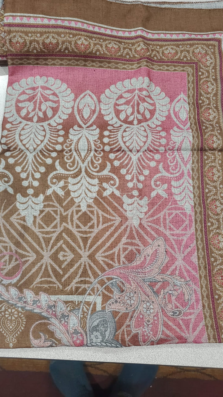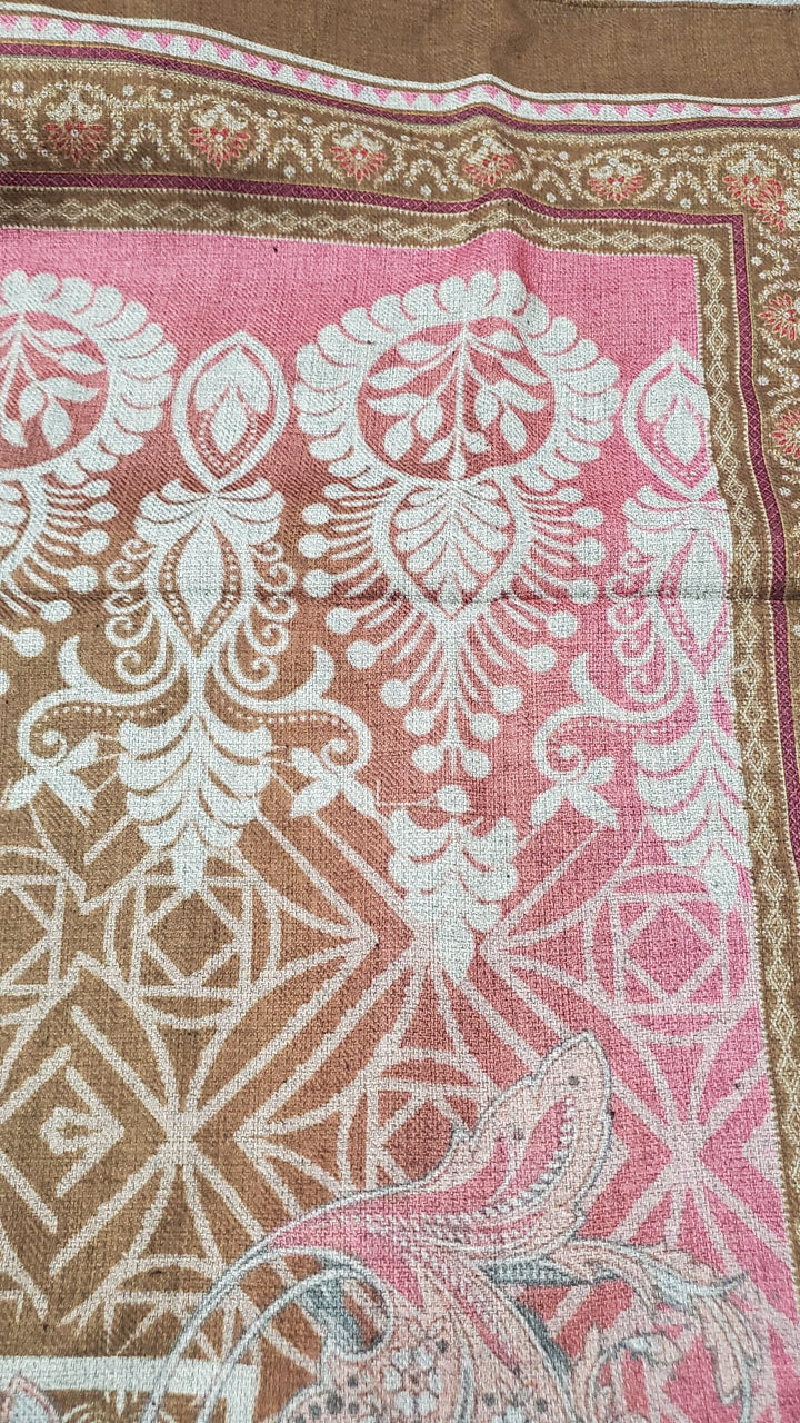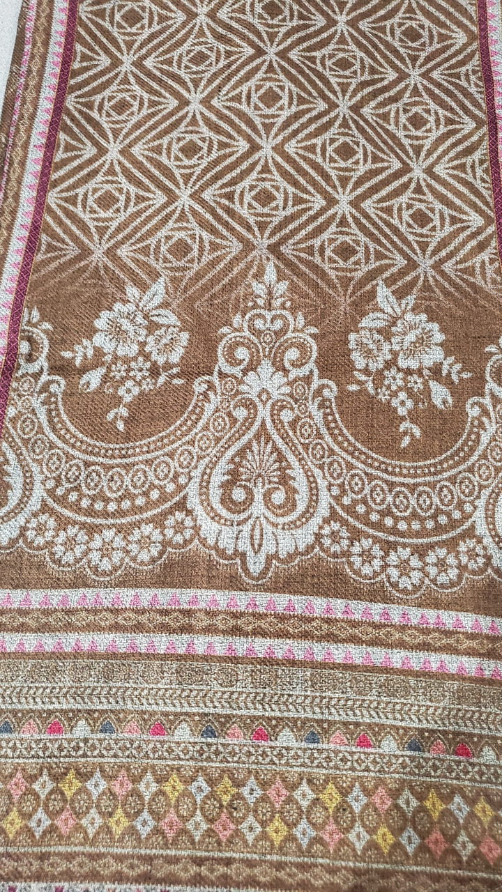 Printed Woolen Suit with Shawl – Earthy Brown Tones