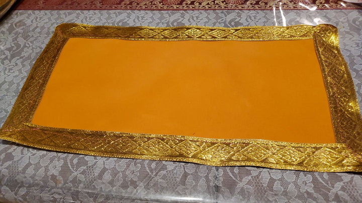 ✨ Enhance your puja rituals with this elegant velvet aasan, designed to bring a traditional touch to your sacred space. Measuring 18 x 10 inches, it is made from premium red velvet cloth and bordered with a golden swastik and floral lace, symbolizing positivity, prosperity, and auspiciousness.