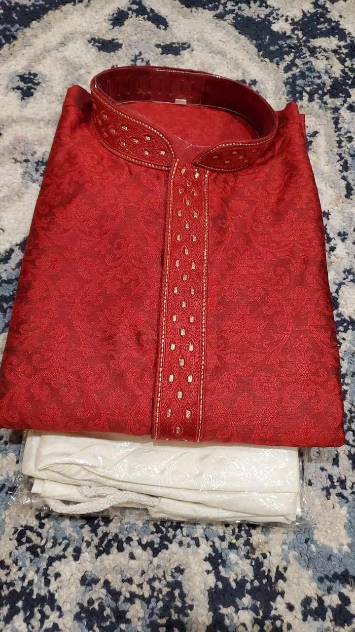 Red Kurta With White Pajama Set Beautiful pattern on Kurta